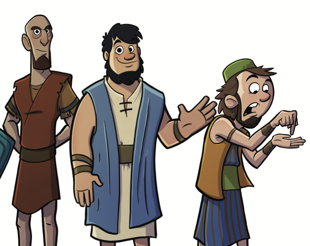 Complete character design turnaround sheet showing all 12 Disciples in ancient clothing with individual poses and expressions for a personal Bible project. Illustrated by Brad Smith.